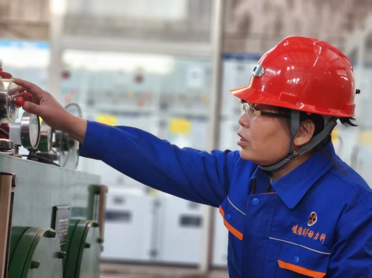 一個(gè)身影在鋼鐵器械之間靈活穿行。她身著藍(lán)色工裝,安全帽下,一雙明亮的眼睛格外引人注目,在這個(gè)幾乎全是男性的工作環(huán)境里顯得尤為突出。她時(shí)而俯身仔細(xì)查看設(shè)備的運(yùn)行參數(shù),時(shí)而仰頭認(rèn)真觀察液壓管路,眼神專注且堅(jiān)定。